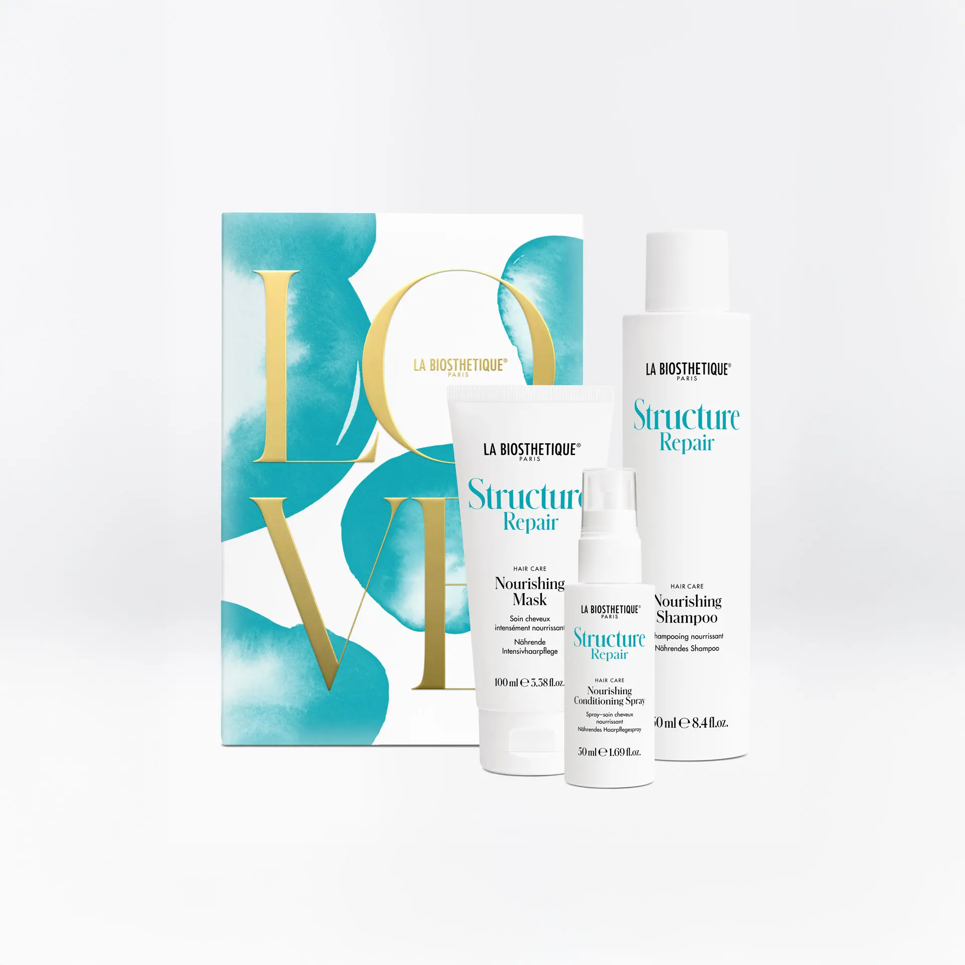 PRODUKTE IM SET: Nourishing Shampoo 250 ml, Nourishing Mask 100 ml, Nourishing Conditioning Spray 50 ml (kostenlos)